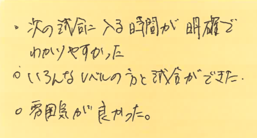 それと、この日は、珍しく初参加の方ばかりの大会となりましたが、和気藹々とした雰囲気の中、お楽しみいただけました!