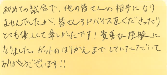 初めて参加された方が、大会を通して何を感じたのか?特に初めて参加しようとしている方の参考にしていただけたらと思います。