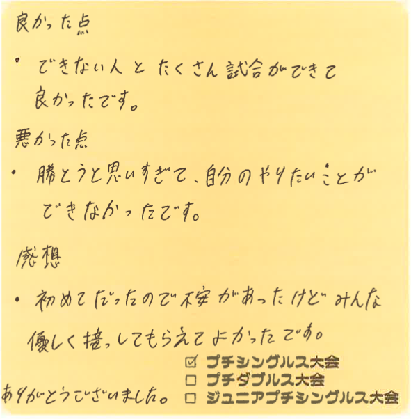 プチシングルス大会の杉下です!