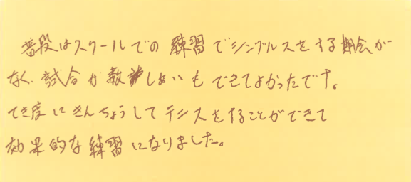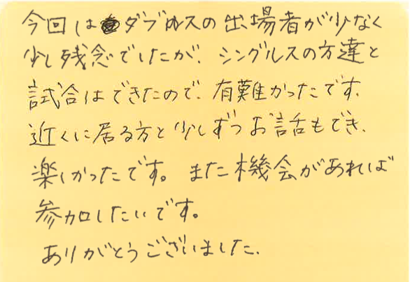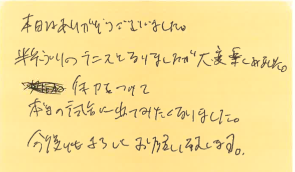 また、皆さんとコートでお会いできる日を楽しみにしております!!