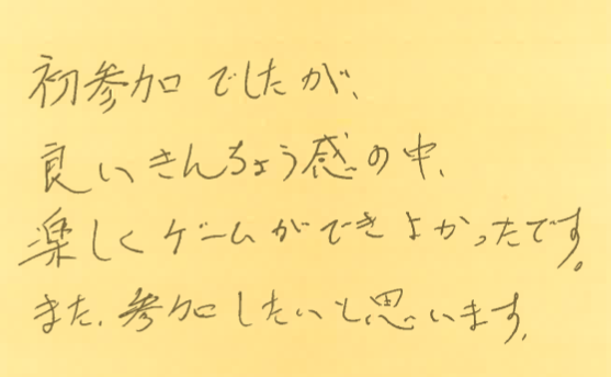 そして、この日、初めて参加してくださった方よりいただいた感想も紹介させていただきます!
