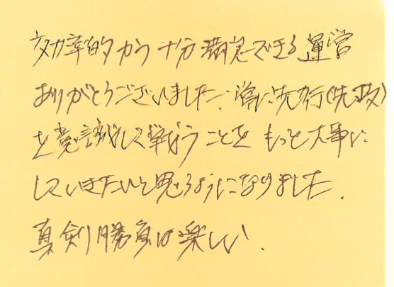 また対戦させていただく日に向けて、しっかりと修行しておこうと思います!