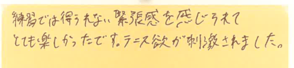 また、皆さんとコートでお会いできる日を楽しみにしております!!