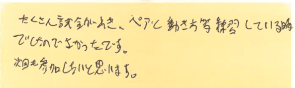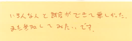 そして、この日、初めて参加してくださった方よりいただいた感想も紹介させていただきます!