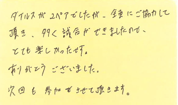 また、皆さんとコートでお会いできる日を楽しみにしております!!
