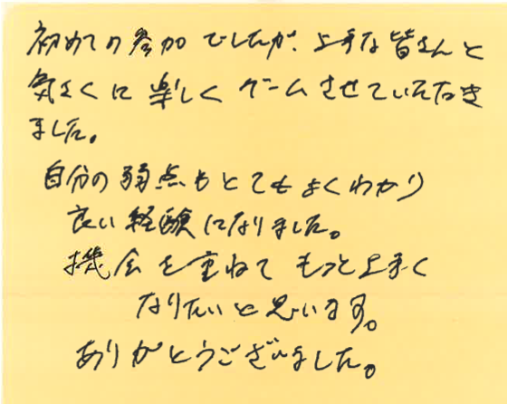 5月28日の調布大会に初めて参加してくださった方の感想です!