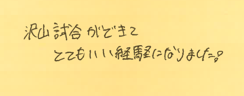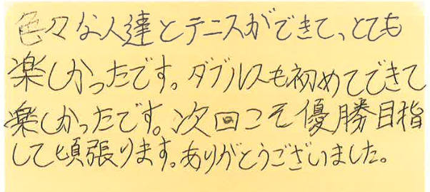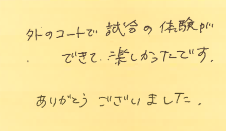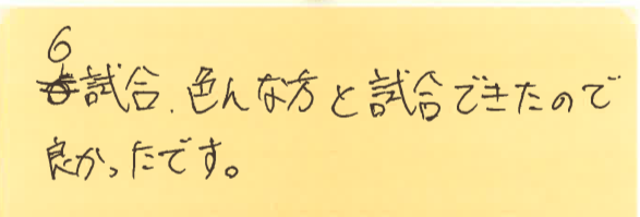 さて、そんな中、コートではいろいろな対戦があり、皆さん、それぞれたくさんの経験を積んで帰られました。