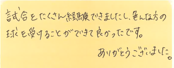 また、皆さんとコートでお会いできる日を楽しみにしております!!