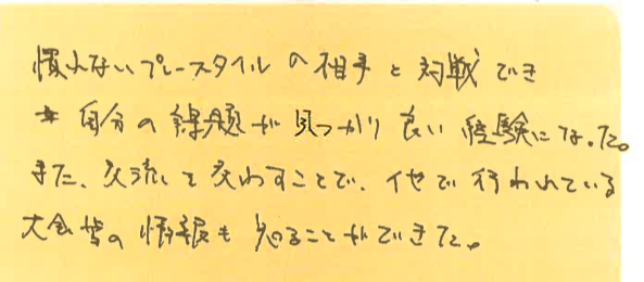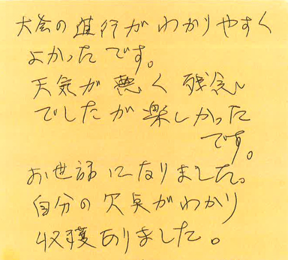 初めて参加された方が、大会を通して何を感じたのか?特に初めて参加しようとしている方の参考にしていただけたらと思います。