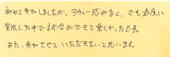 今回は、7月2日の松戸大会に初めて参加された方の感想をシェアさせていただきます!