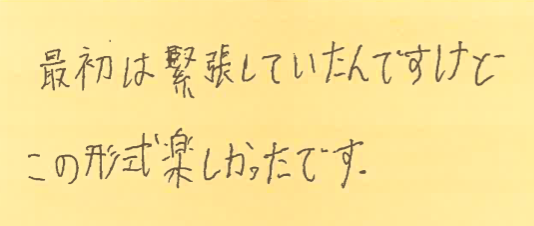 そして、この日、初めて参加してくださった方よりいただいた感想も紹介させていただきます!