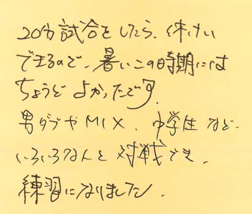 また、皆さんとコートでお会いできる日を楽しみにしております!!