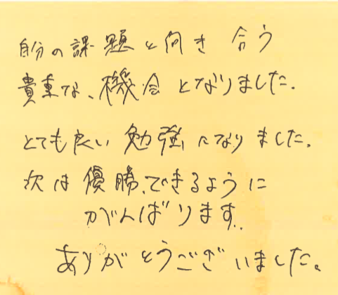 そして、この日、初めて参加してくださった方よりいただいた感想も紹介させていただきます!