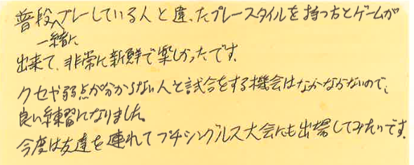 この日はシングルスもダブルスもハイレベルで、見ているだけでも楽しい大会でした!