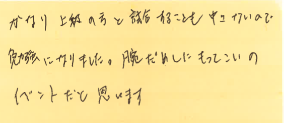 そして、この日、初めて参加してくださった方よりいただいた感想も紹介させていただきます!