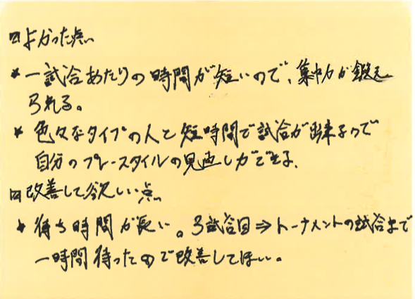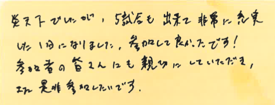 初めて参加された方が、大会を通して何を感じたのか?特に初めて参加しようとしている方の参考にしていただけたらと思います。