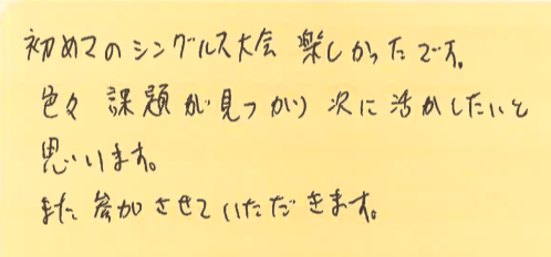 特にシングルスは、上級者が結構集まったため、久々に上級者だけで予選・決勝を行ったため、とてもハイレベルな戦いとなりました!