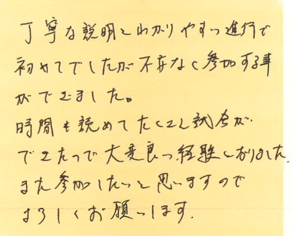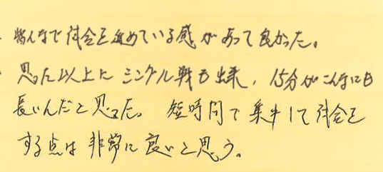 そして、この日、初めて参加してくださった方よりいただいた感想も紹介させていただきます!