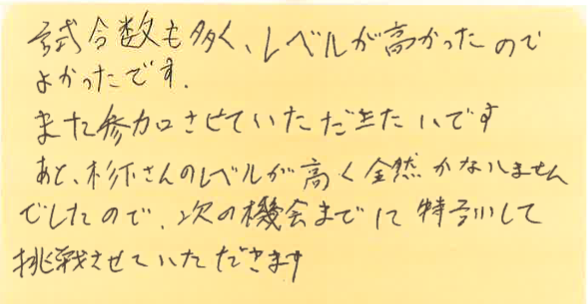そして、そんな中、優勝したのは、上級者クラスは、私、中級者クラスは、山口選手でした!