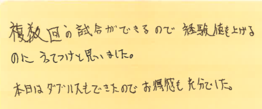 シングルスは珍しく、初級者クラスばかり集まったので、この日は初級者クラス限定大会に!!