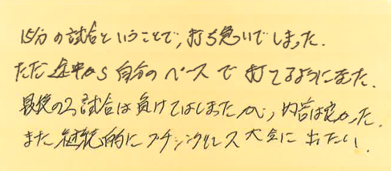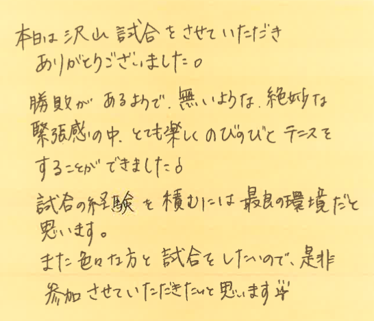 また、皆さんとコートでお会いできる日を楽しみにしております!!