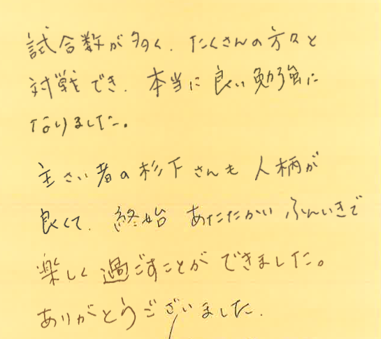 前日の北村大会に続いて、この日も上級者が多かったため、上級者だけの対戦を組ませていただき、お楽しみいただきました!