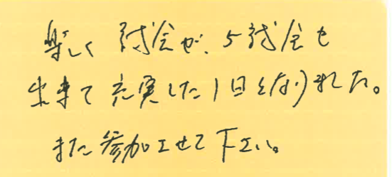 初めて参加された方が、大会を通して何を感じたのか?特に初めて参加しようとしている方の参考にしていただけたらと思います。