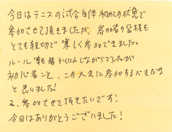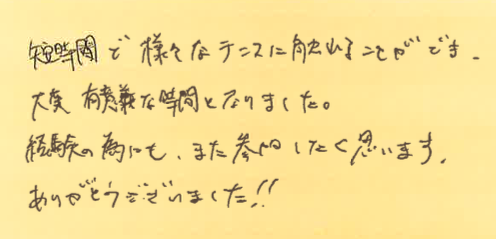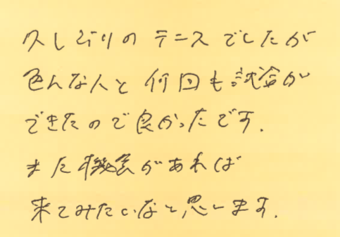 また、皆さんとコートでお会いできる日を楽しみにしております!!