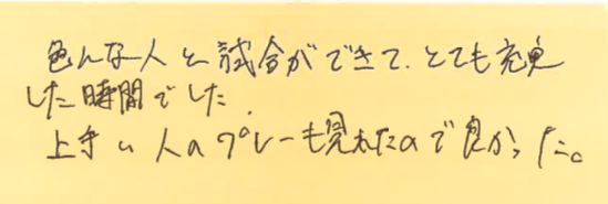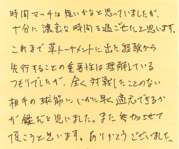 いやぁ、それにしても強かった・・・次回は、もっとしっかりと競り合えるよう、しっかりと修行しておきたいと思います!