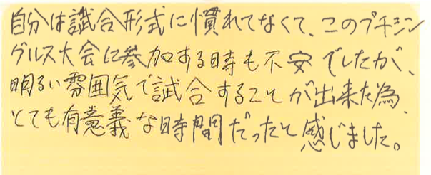 初めて参加された方が、大会を通して何を感じたのか?特に初めて参加しようとしている方の参考にしていただけたらと思います。
