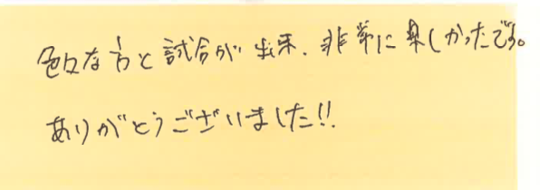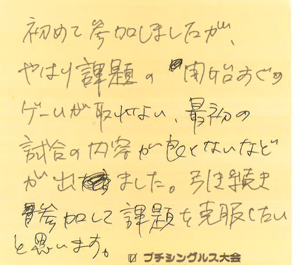 初めて参加された方が、大会を通して何を感じたのか?特に初めて参加しようとしている方の参考にしていただけたらと思います。