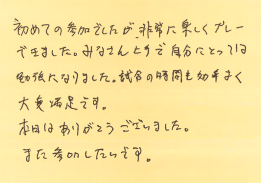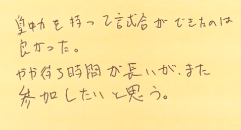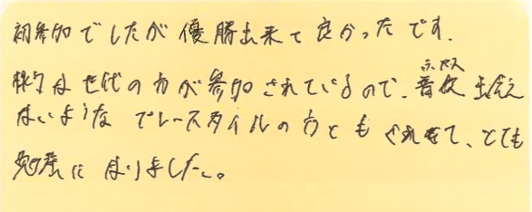 初めて参加された方が、大会を通して何を感じたのか?特に初めて参加しようとしている方の参考にしていただけたらと思います。