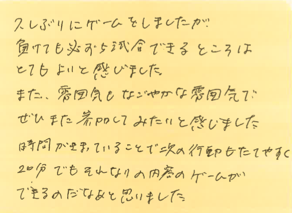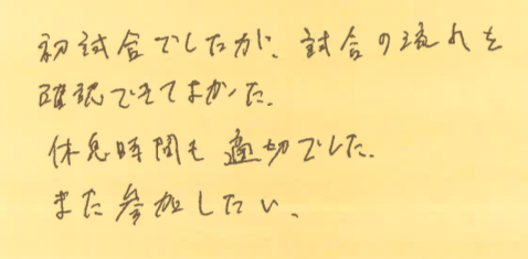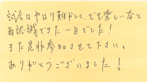 そして、この日、初めて参加してくださった方よりいただいた感想も紹介させていただきます!