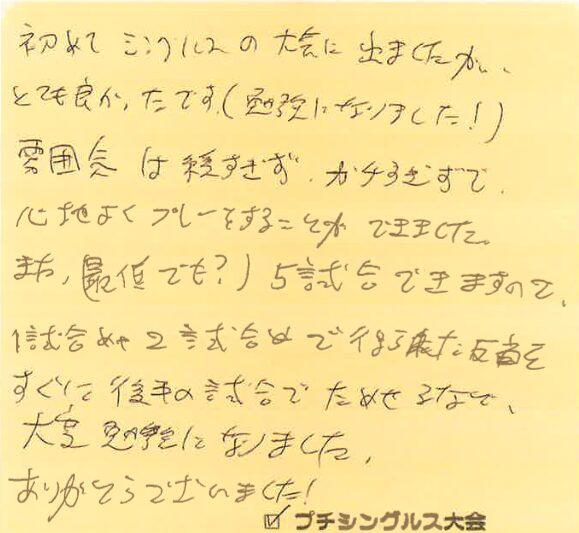 また、皆さんとコートでお会いできる日を楽しみにしております!!