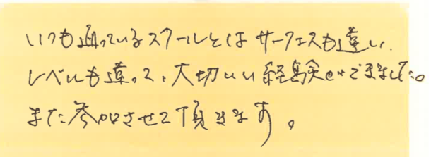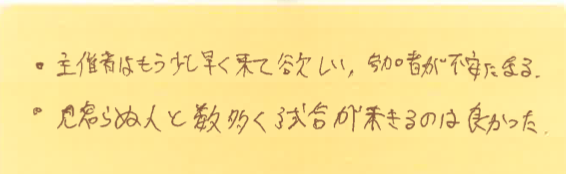 そして、この日、初めて参加してくださった方よりいただいた感想も紹介させていただきます!