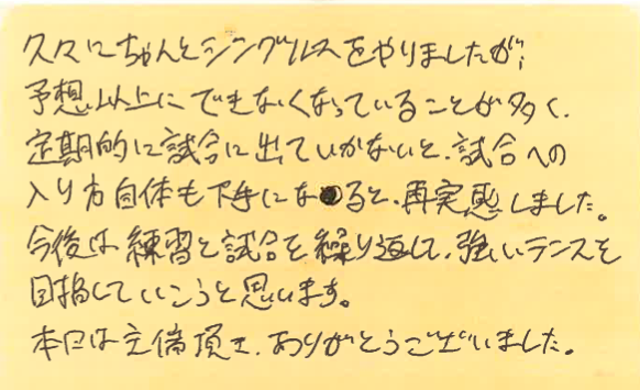 また、皆さんとコートでお会いできる日を楽しみにしております!!