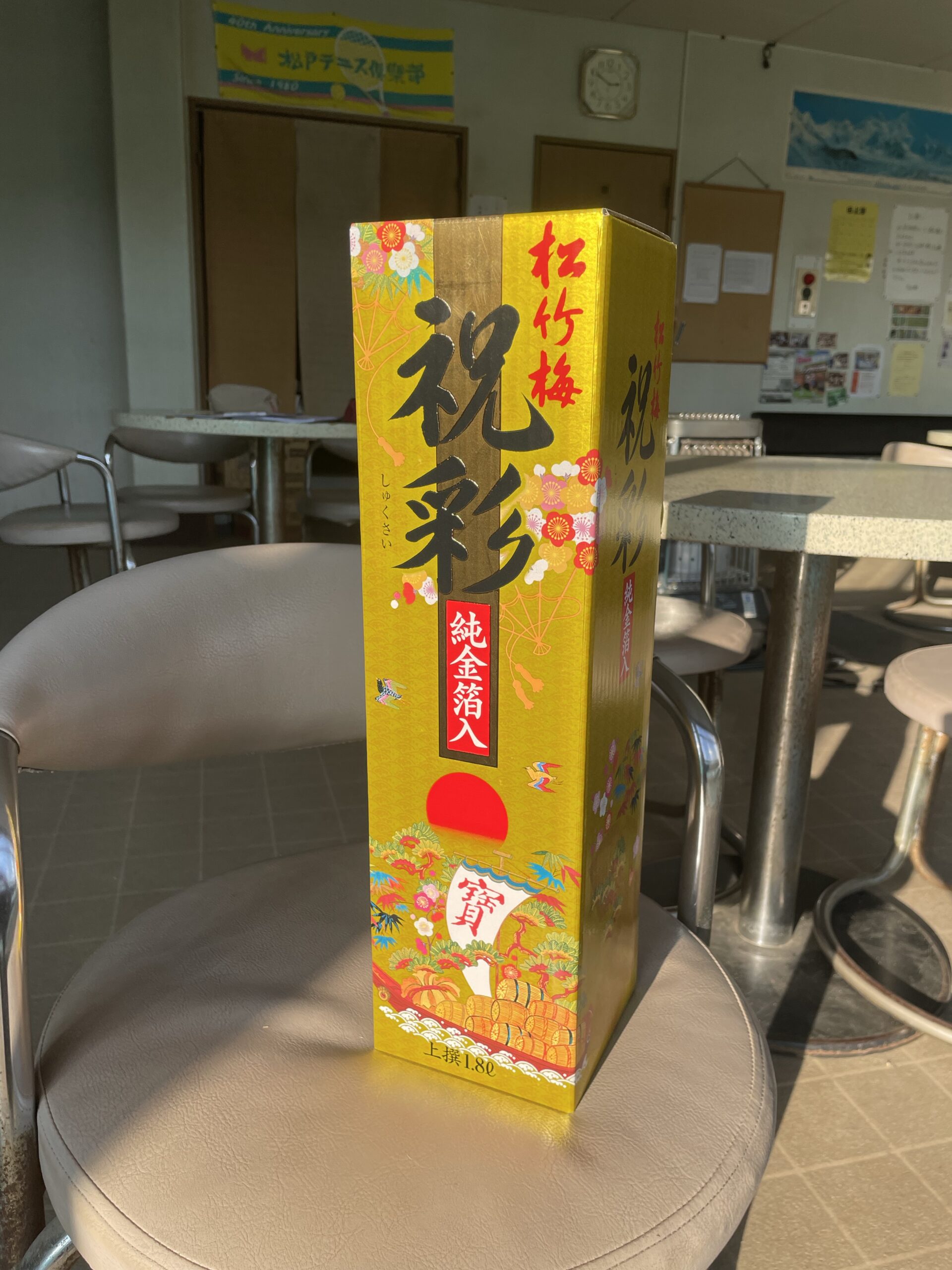 シングルスで優勝した方の賞品として用意したのは、「金箔入りの日本酒」!!