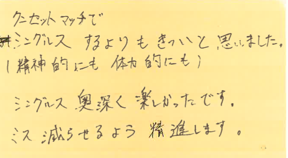 小学生の頃からプチシングルス大会に参加してくださっているのですが、とんでもなく強くなりましたね!