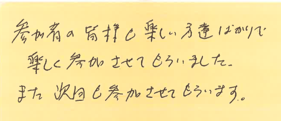 そして、この日、初めて参加してくださった方よりいただいた感想も紹介させていただきます!