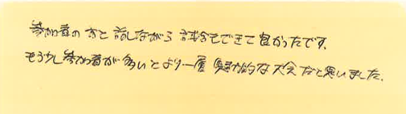 そして、この日、初めて参加してくださった方よりいただいた感想も紹介させていただきます!