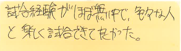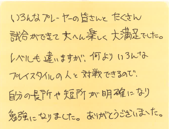 さて、今回は、1月20日と21日に開催した大会の写真と優勝された方のお名前、それと、一部の大会では、その日に初めて参加してくださった方よりいただいた感想をご紹介させていただきます!