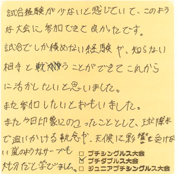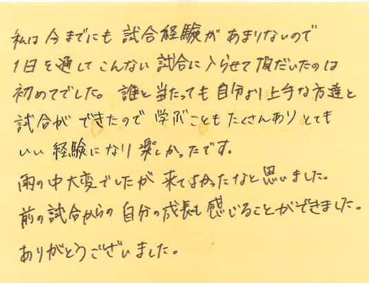 なお、優勝したのは、シングルスは梅田選手、ダブルスは、前山選手・内野選手組でした!