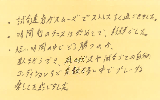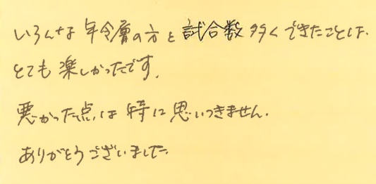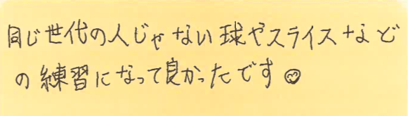 スタッフより、「サーブが凄く上手でした!」とのコメントをいただいております!!