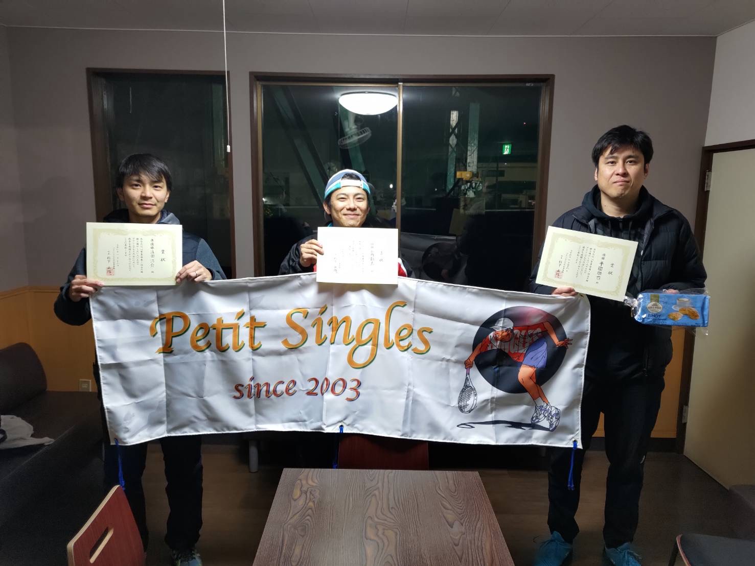そんな中、優勝したのは、シングルスは岡武選手、ダブルスは、室津選手・本田選手組でした!