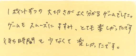 そして、この日、初めて参加してくださった方よりいただいた感想も紹介させていただきます!