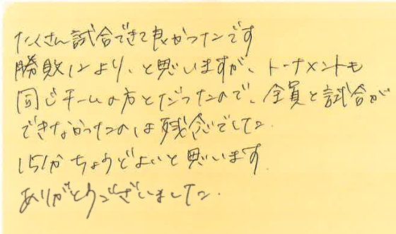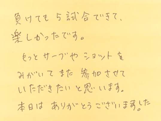 また、皆さんとコートでお会いできる日を楽しみにしております!!
