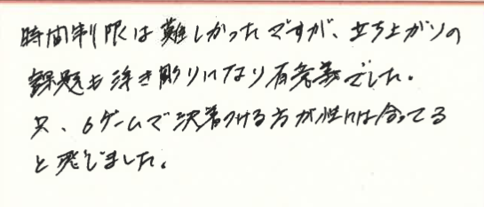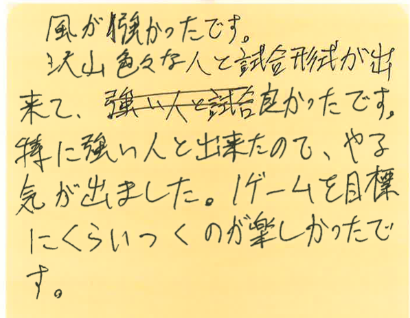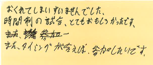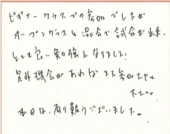 今回は、1月4日、7日、14日、28日の調布大会に初めて参加された方の感想をシェアさせていただきます!
