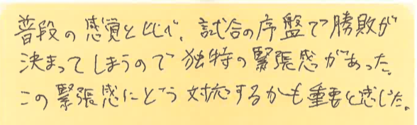 私も決勝トーナメントで対戦させていただきましたが、序盤で手も足も出ず、引き離されてしまい、後半、盛り返したものの、追いつけず・・・という感じでした。
