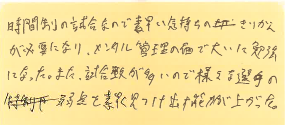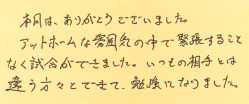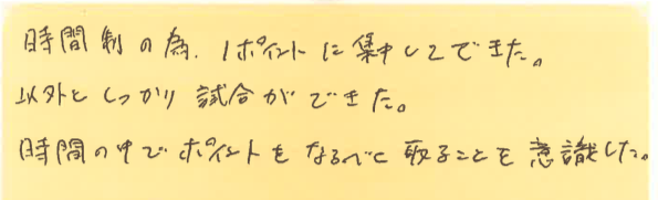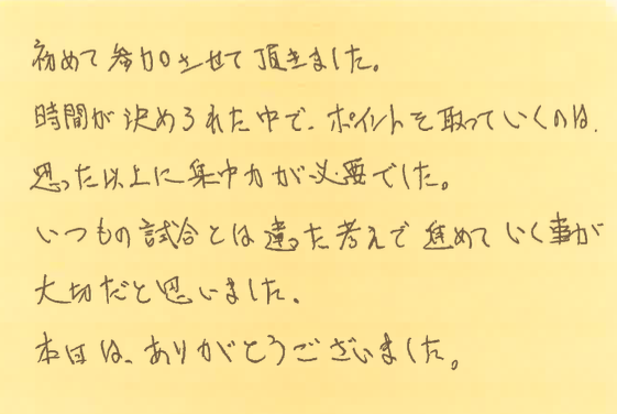 最近の平日開催の中では、最も少ない人数での開催となりましたが、皆さん、しっかりと試合経験を積まれておりました!