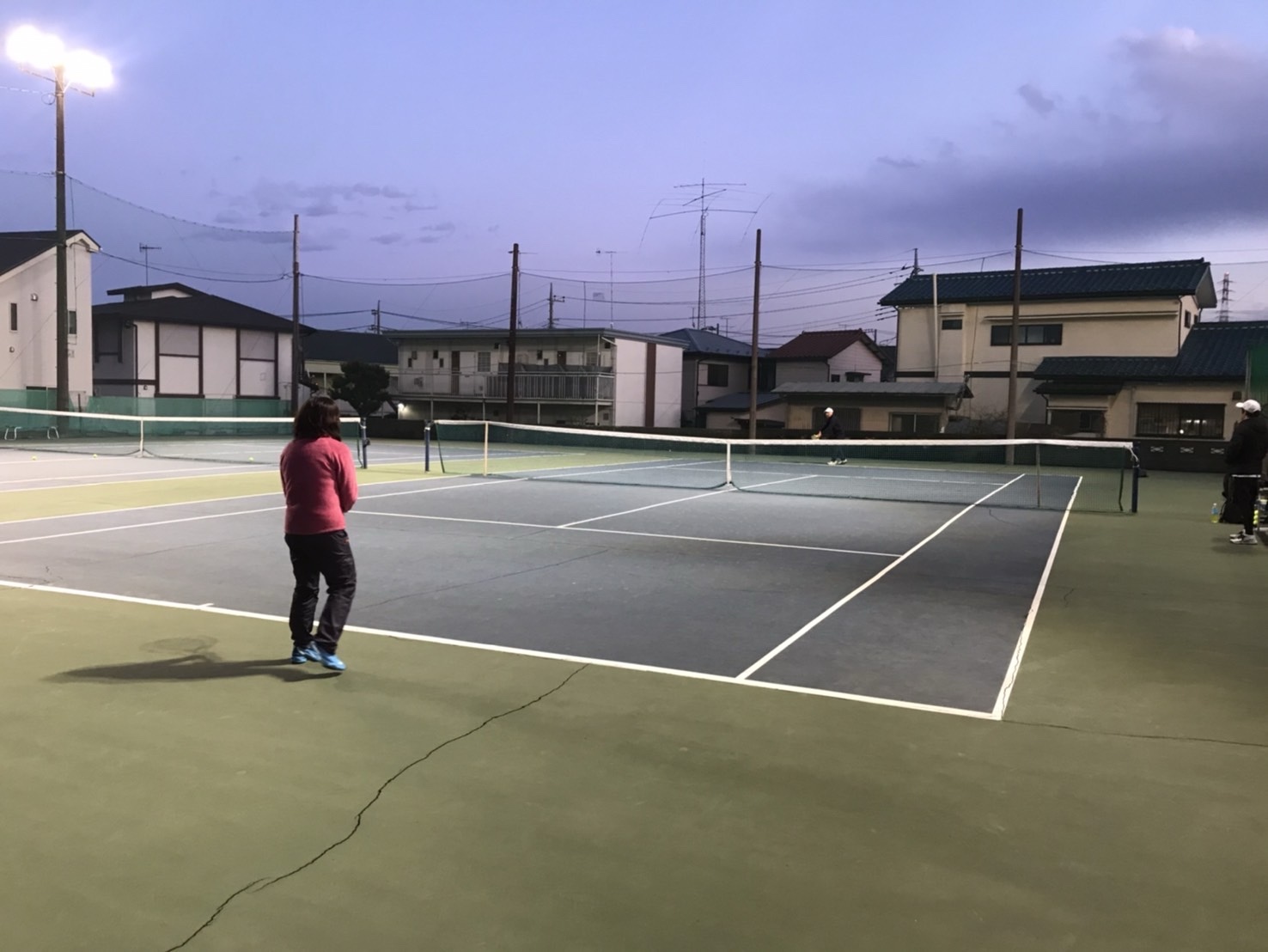 夕暮れ時のコートでのプレー、空が綺麗ですね!!